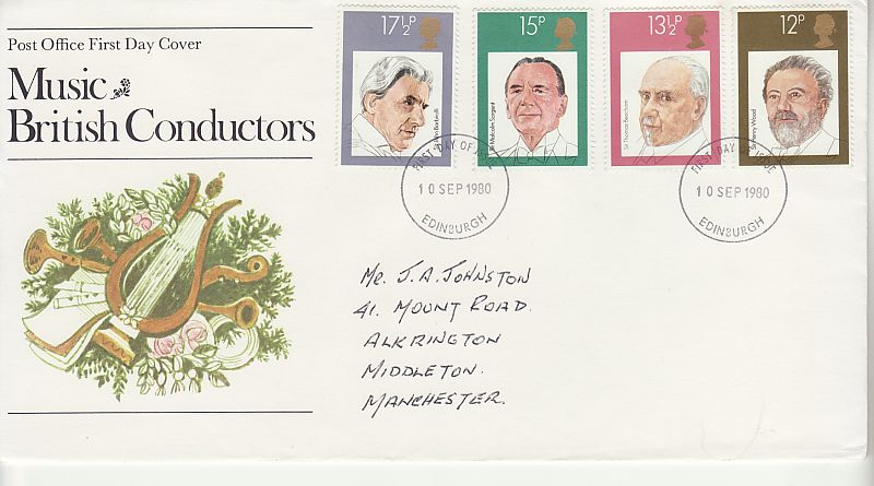 1980-09-10 British Conductors Stamps Edinburgh FDC (01033)