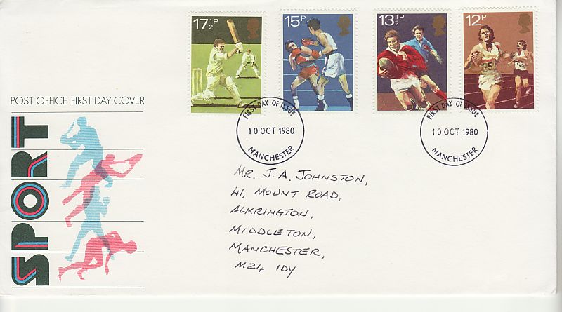 1980-10-10 Sport Stamps Manchester FDC (01034)