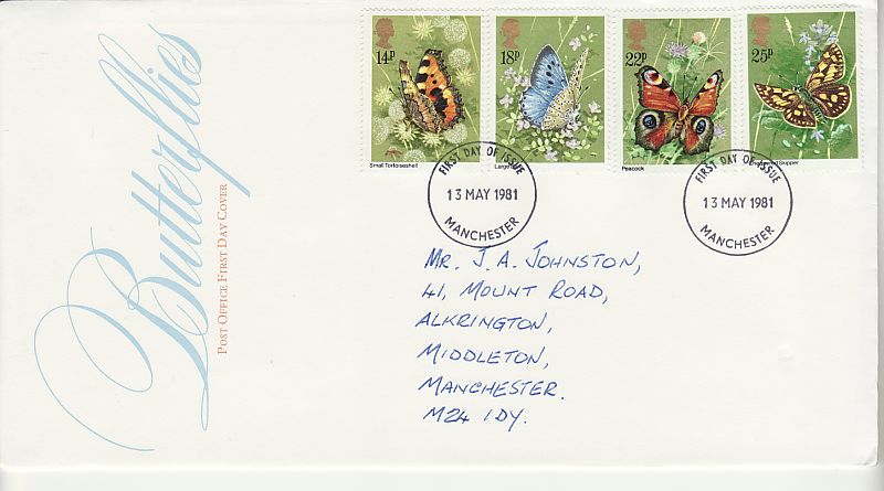 1981-05-13 Butterflies Stamps Manchester FDC (01037)
