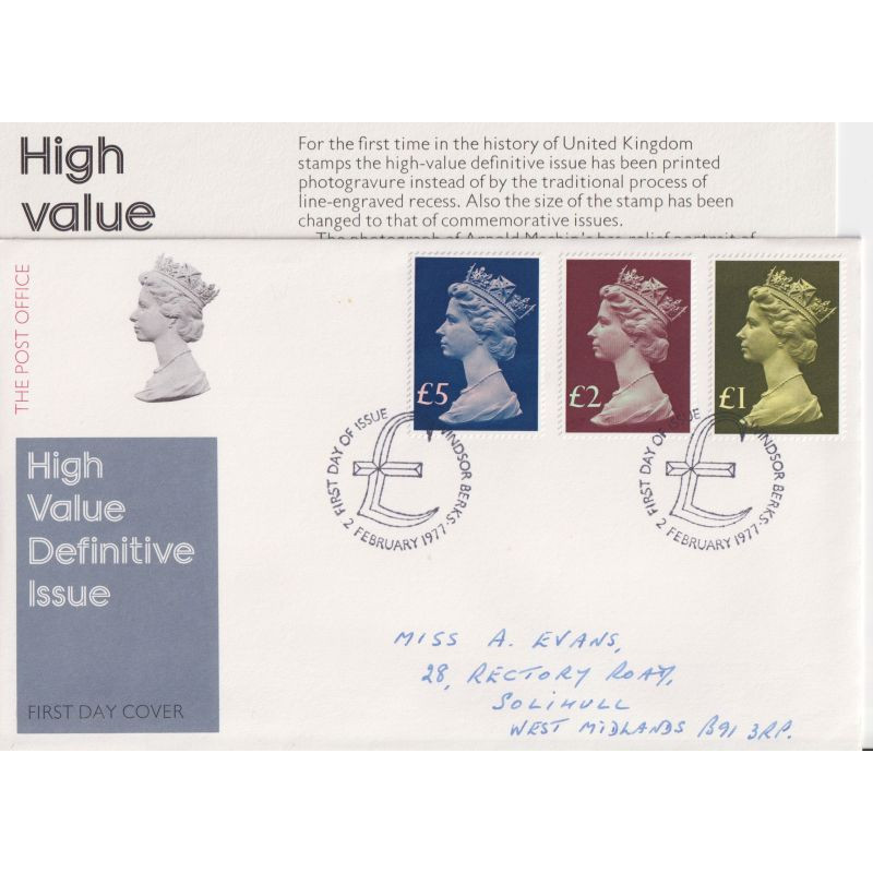 1977-02-02 High Value Definitive Stamps Windsor FDC (91843)