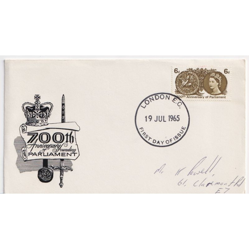 1965-07-19 Parliament Stamp 6d London FDC (91980)