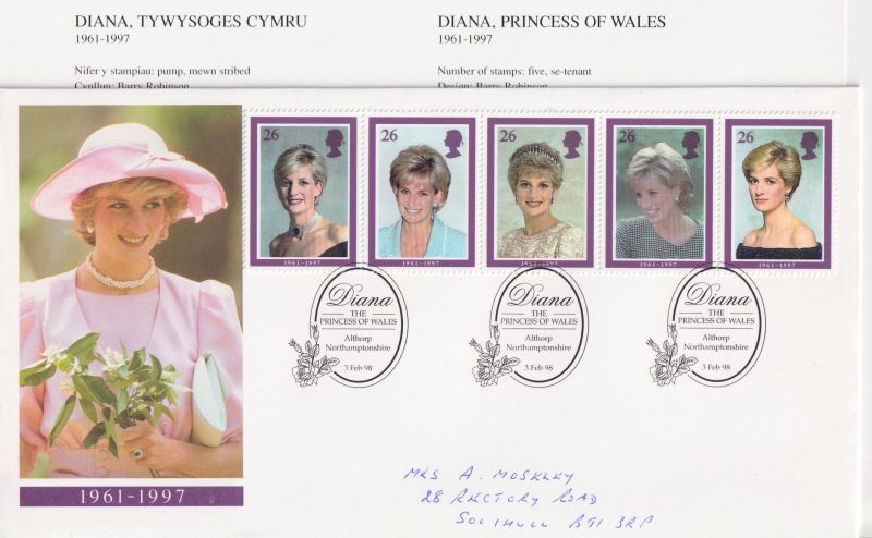 1998-02-03 Princess Diana Stamps Althorp FDC (92048)