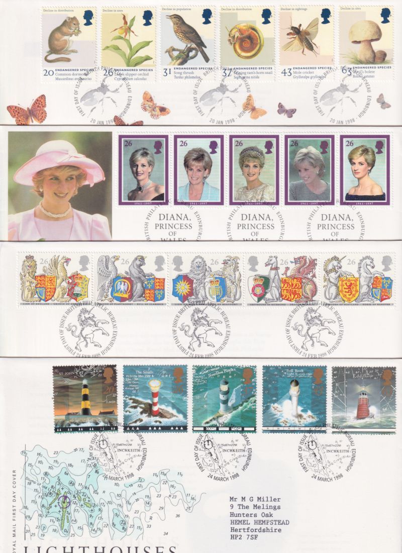 1998 x 10 First Day Covers with Bureau Pmks (92126)