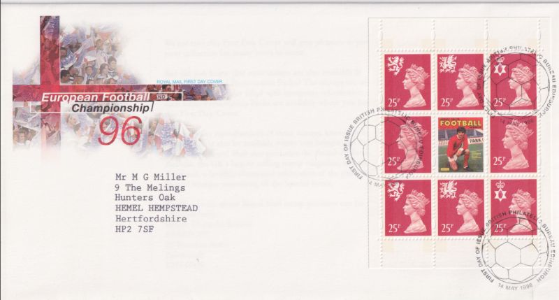 1996-05-14 Football Booklet Stamps Bureau FDC (92210)