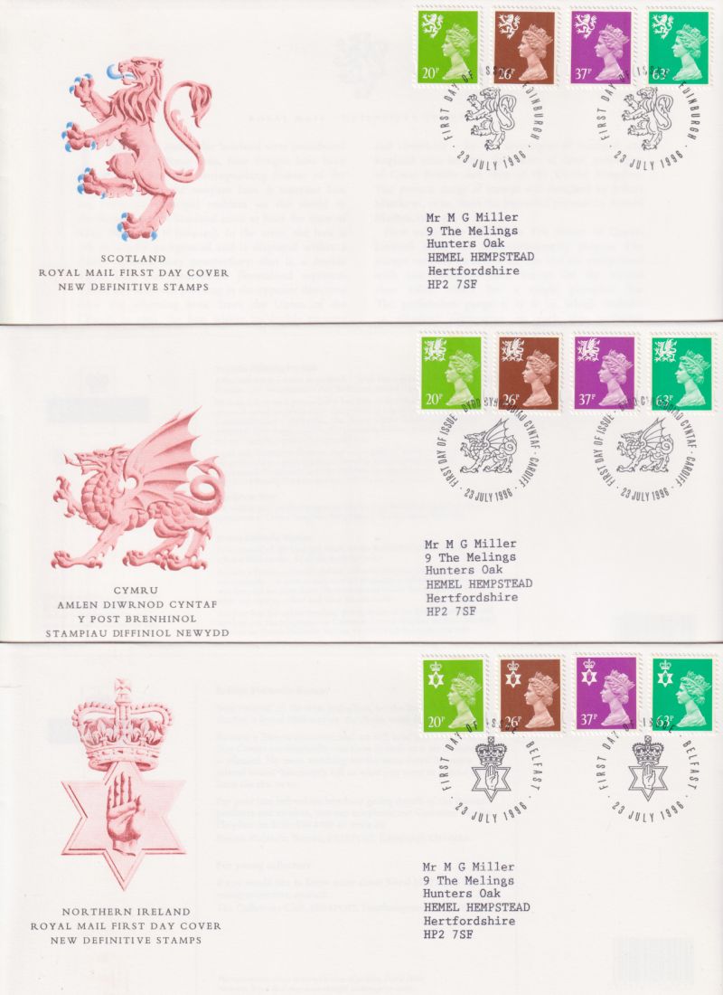 1996-07-23 Regional Definitive Stamps x3 SHS FDC (92271)
